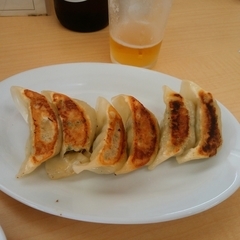 〆に餃子と赤星。